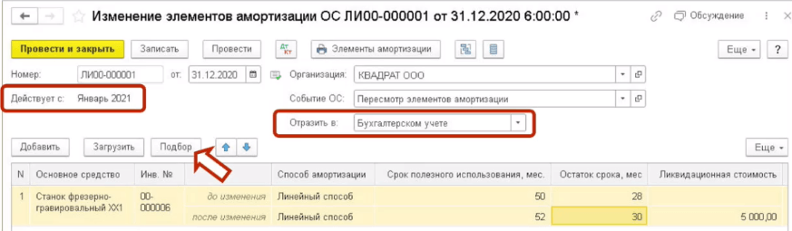 Изменение действует со следующего месяца после проведения данного документа. Как и ранее, изменения можно будет отразить в бухгалтерском учете, налоговом учете, а также одновременно в обоих учетах. Также можно изменить элементы амортизации ОС: