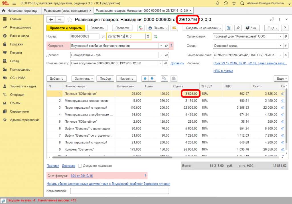 5. После проделанных процедур режиме "1С:Предприятие" в полях ввода, календаре, калькуляторе, документах, печатных формах и др. данные будут отображаться в соответствии с установленными настройками.