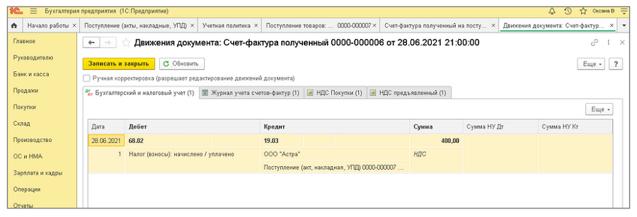 Для принятия к вычету входного НДС следует сформировать документ «Счет-фактура полученный».