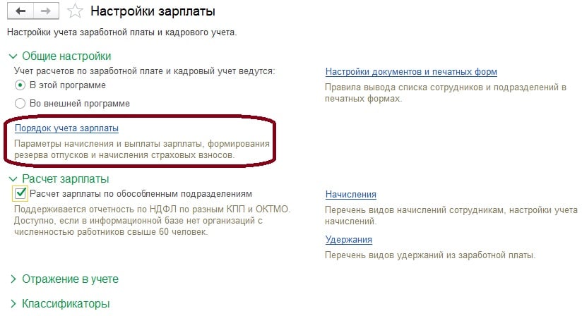Обратиться к данной настройке можно через порядок учета зарплаты.