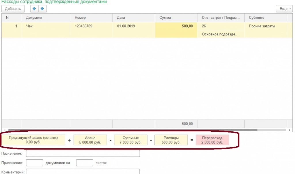 Новая удобная форма предусматривала простой способ работы, по которому в документе отражались только командировочные расходы.