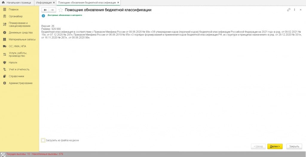 Шаг 1. Запуск Помощника обновления бюджетной классификации
