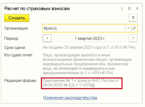 При создании формы за 1 квартал 2023 года обращайте внимание на редакцию формы.