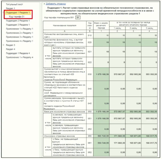 Подраздел 1 раздела 1 заполняем согласно применяемым тарифам. Если организация применяет несколько тарифов, то будет несколько разделов по кодам тарифов.