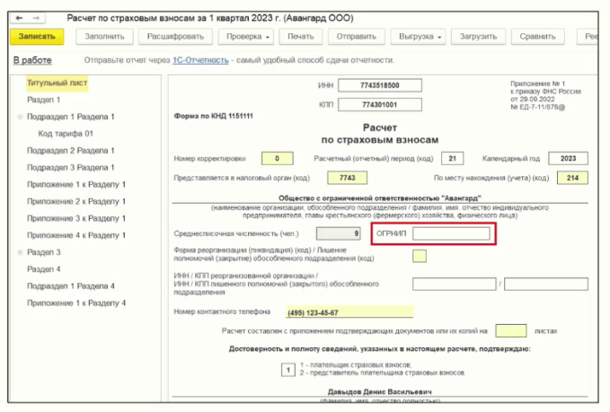 На титульном листе появилось новое поле ОРНИП. Его заполняют индивидуальные предприниматели и главы К(Ф)Х.