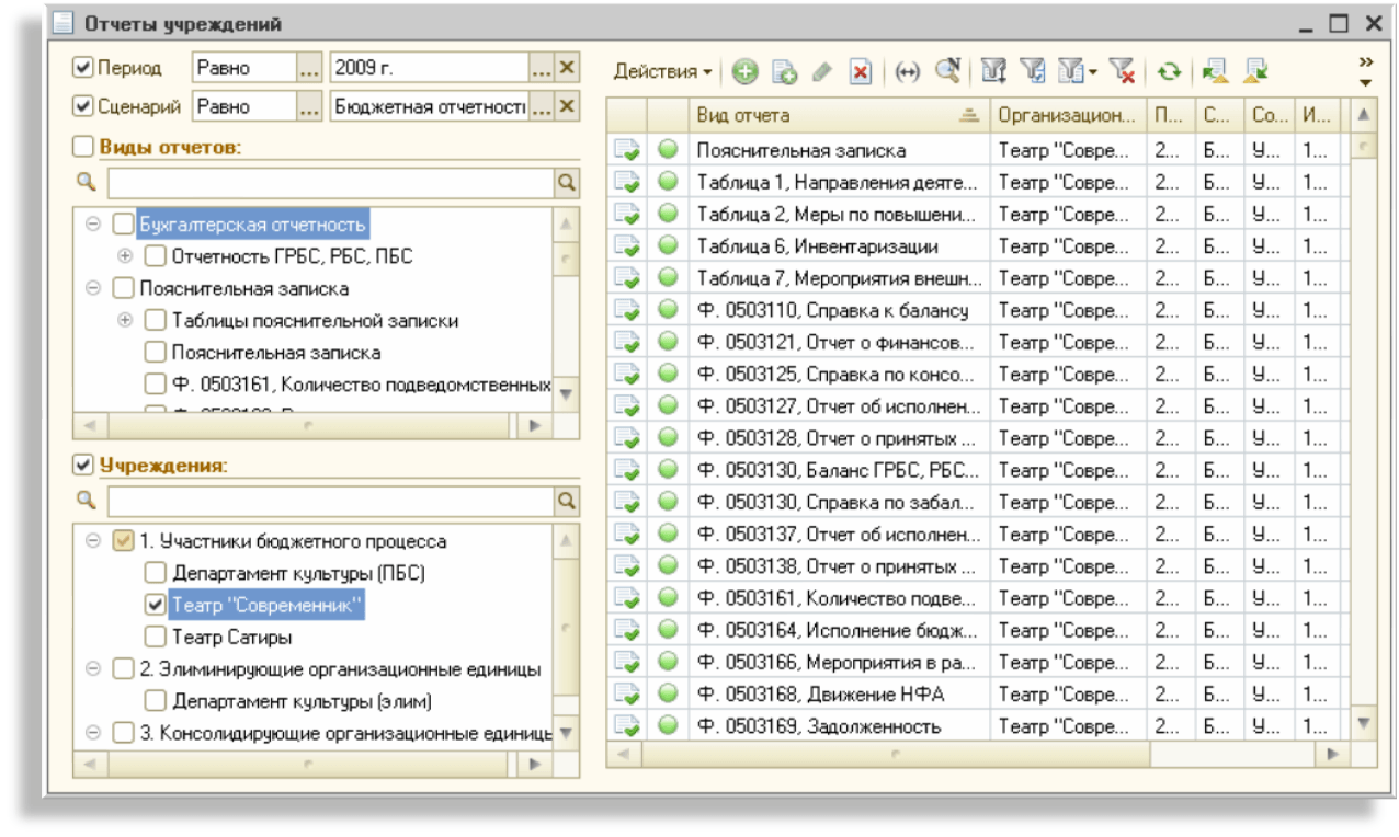 "1С:Бюджетная отчетность 8" предоставляет следующие функциональные возможности: