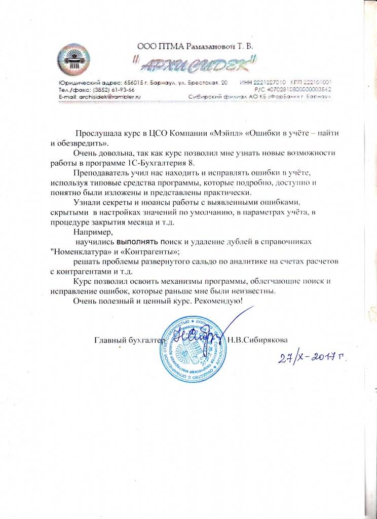 Отзыв о курсе ЦСО Ошибки в учете - найти и обезвредить