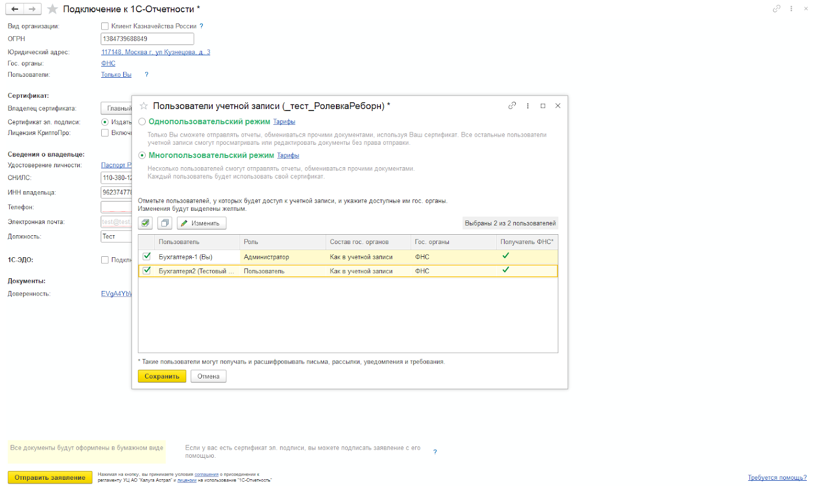 Подключение режима занимает всего несколько минут: достаточно перейти в раздел заявлений на подключение, выбрать режим работы пользователей и активировать многопользовательский доступ. Это делает работу более гибкой и удобной для организаций с распределенными отделами или большим объемом отчетов.